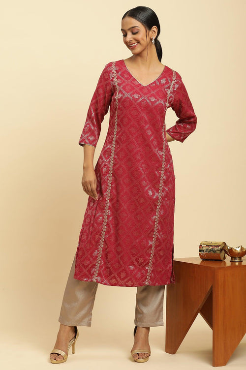 Red Rayon Jacquard Sequined Festive Kurta - wforwoman