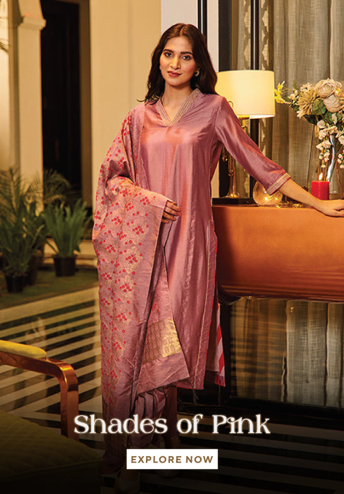 Pink Zari Embellished Short Kurta, Flared Pants And Dupatta Set- Regular price