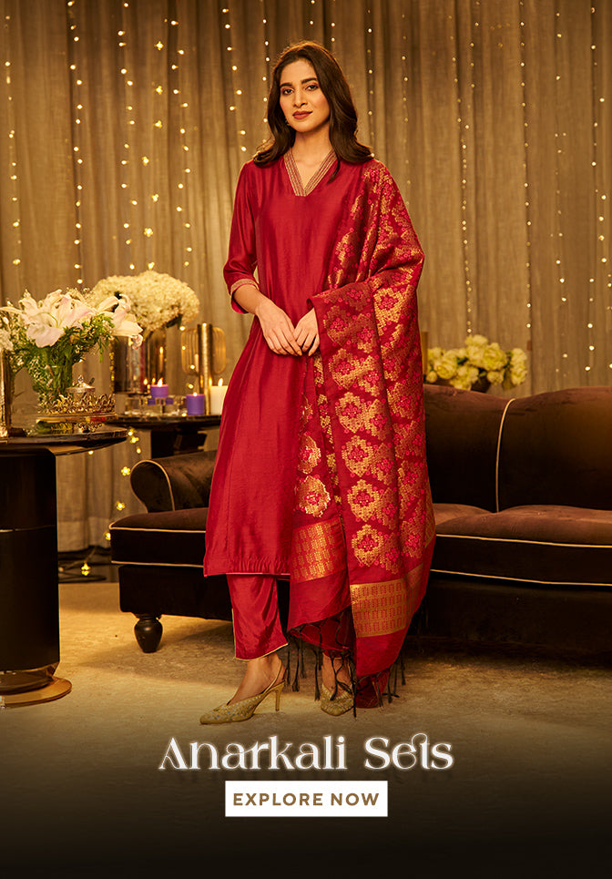Maroon Printed Chanderi Anarkali Dress and Dupatta Set- Regular price
