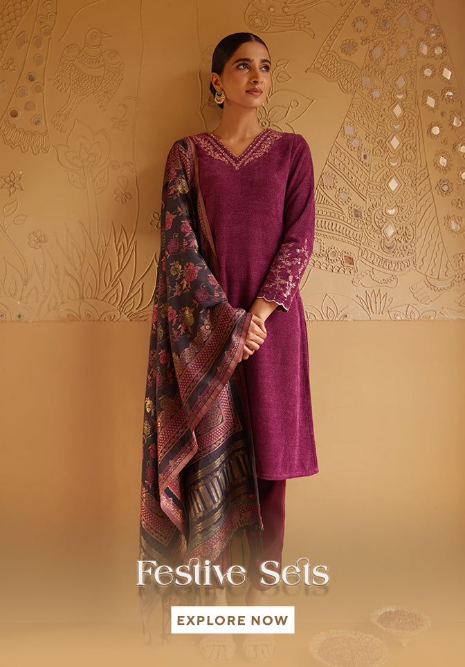 Purple Paisley Printed Gathered Kurta, Pants And Dupatta Set- Regular price