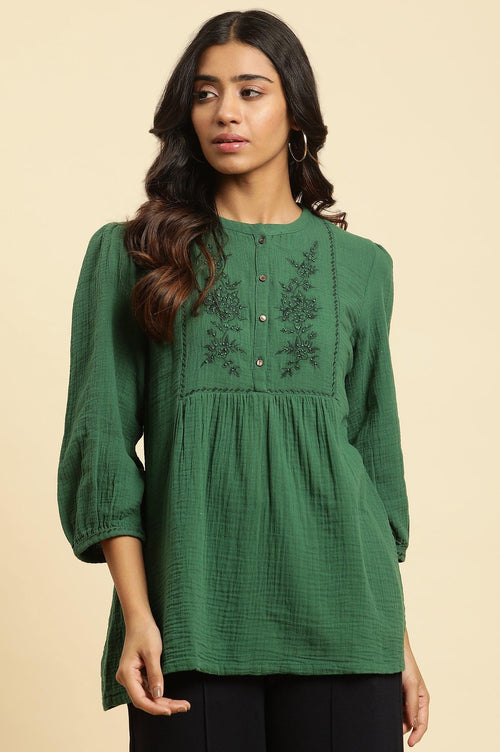 Dark Green Embroidered Western Top