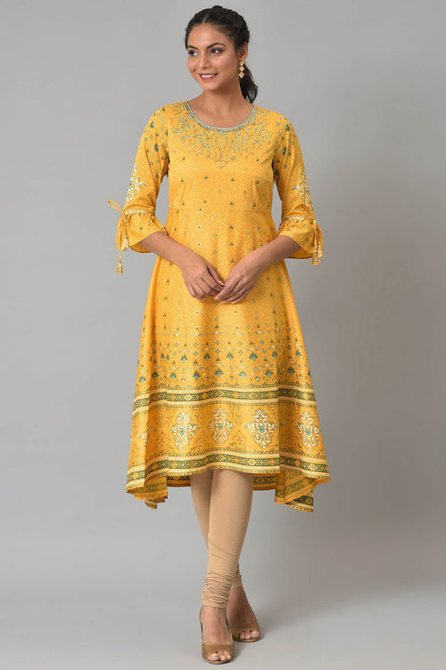 Twirl Girl Twirl!! In This High Low Fish Eye Stylised Kurta. Crafted In Very Drapey American Crepe, This Kurta Features A Deep-Cut Back, Front Yoke Is Highlighted With Embroidery And Ruffles On The Sleeve. You Can Never Go Wrong With This Trendy Piece.